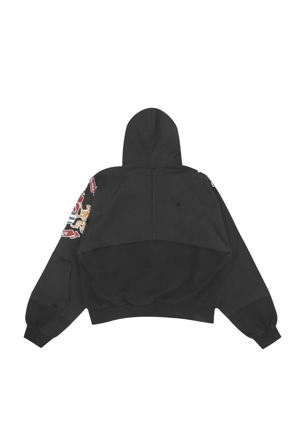 RECONSTRUCTED FOLDED ZIP HOODIE -BLACK